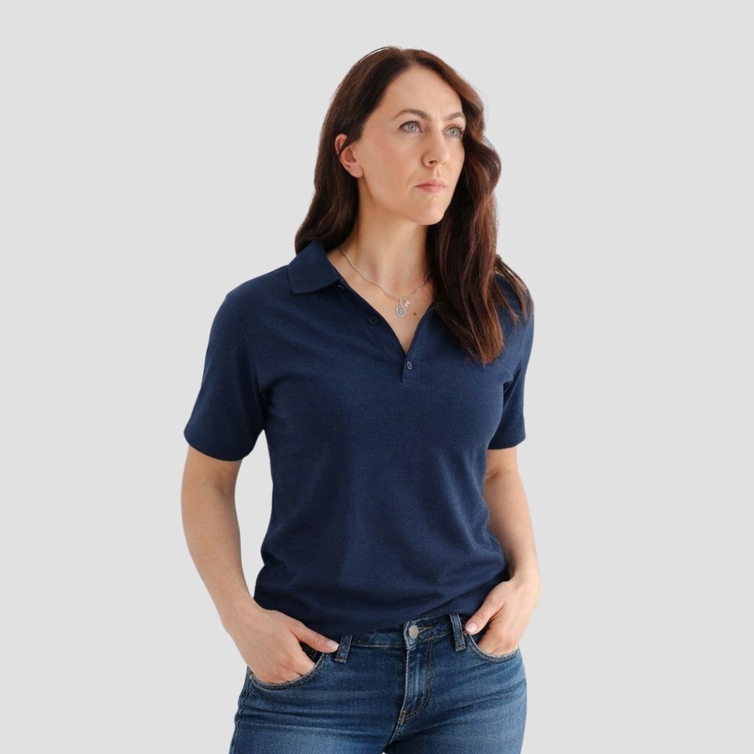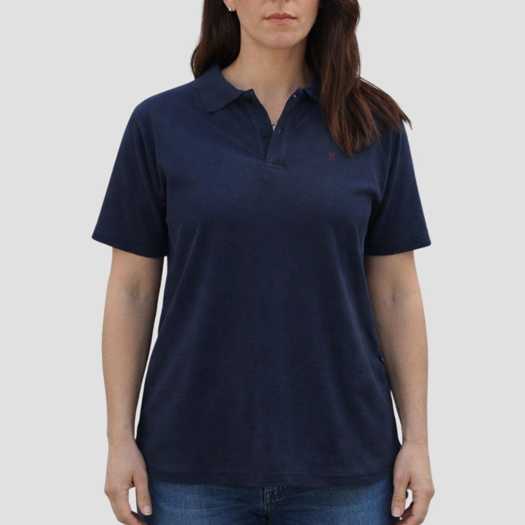 Our Navy Hemp Polo is a timeless wardrobe essential designed with women in mind. Cut in a relaxed unisex fit, it offers effortless polish with all day comfort. Women typically prefer to size down one for a more tailored feel.